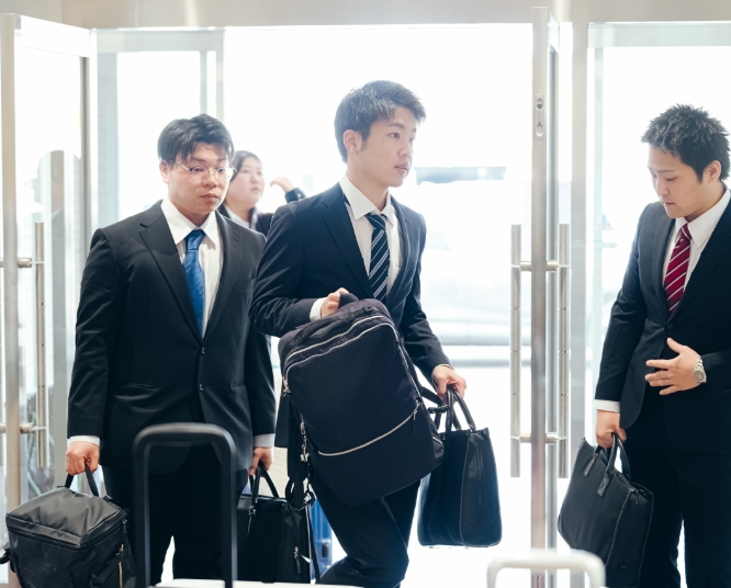 入社式の前日、新入社員たちは全国各地から研修センターに集まりました。