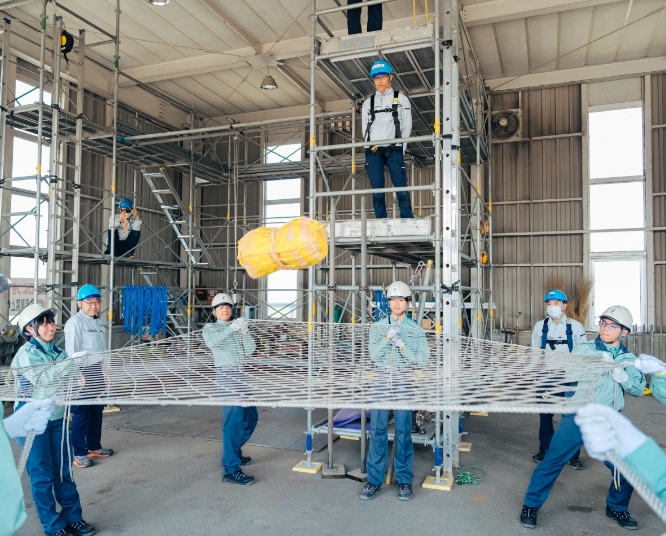 全部門を対象に、工事現場や関連工場の見学、危険体感研修などを行い、実際の業務やスケールを体感します。