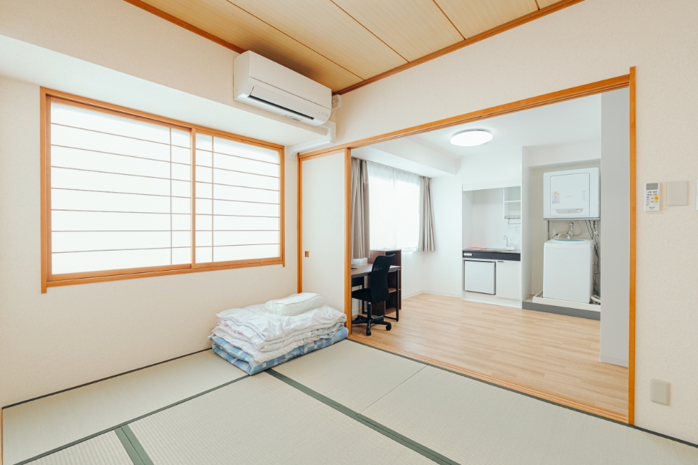 福田組の入社式や研修は、主に牡丹山研修センター(新潟市東区)にて行われます。併設された宿泊施設は2025年に内装をリニューアル。