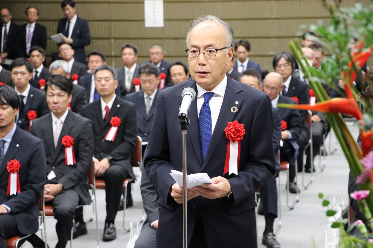 表彰の後には、受賞企業を代表して弊社代表取締役社長が謝辞を述べました。社長は、日ごろの県や地域のご支援への感謝を述べるとともに、今回の受賞は社員一人ひとりの努力と協力会社の皆さまの支えによるものであり、今後も品質と安全を最優先に、地域社会に貢献できる工事を続けていく決意を新たにしたいと語りました。