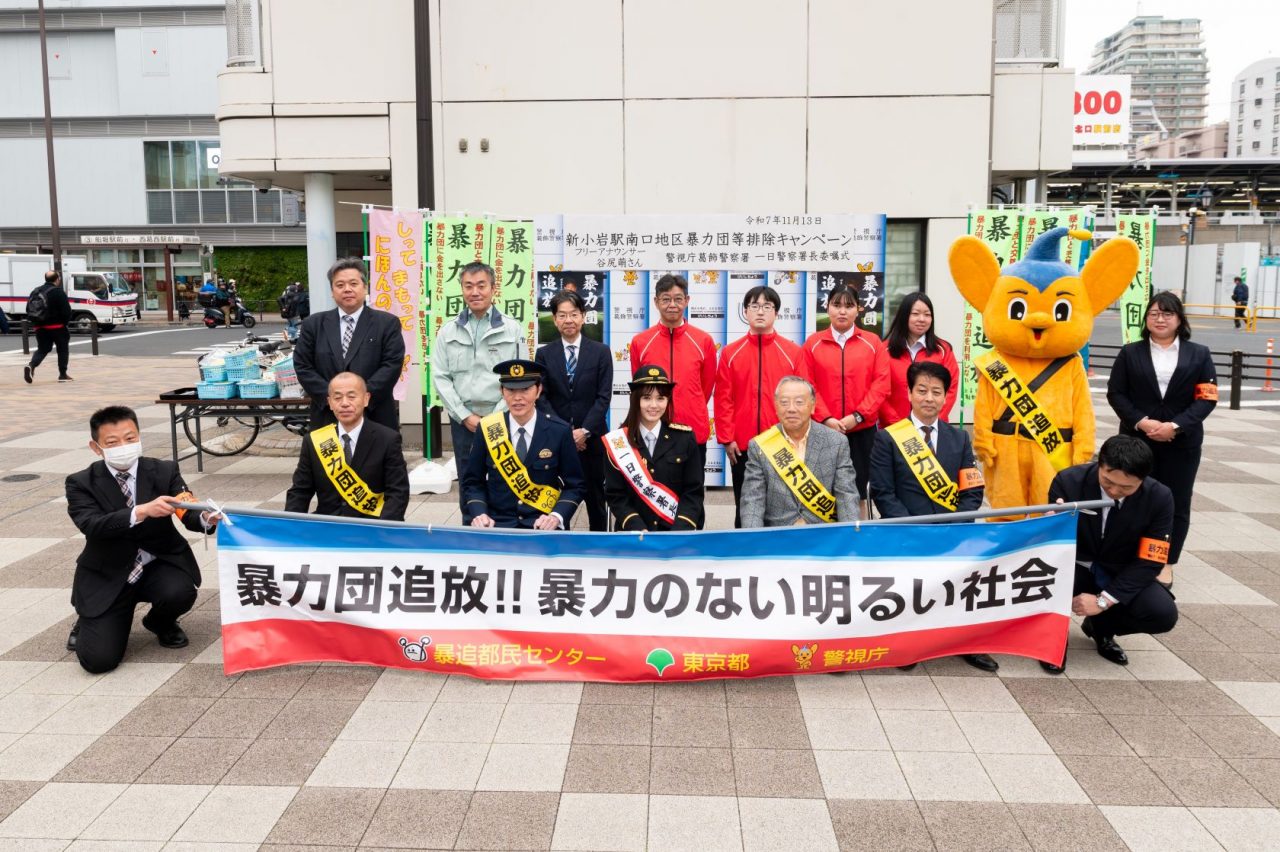 東京建築部が担当する「新小岩駅南口地区市街地再開発事業」では、地域の安全・安心に寄与する取り組みとして、11月13日(木)に新小岩駅前で実施された「新小岩駅南口地区 暴力団等排除キャンペーン」に参加しました。当日は、統括所長(新小岩暴力団等排除協議会 理事)が、地域の防犯意識向上を目的とした活動に協力しました。
