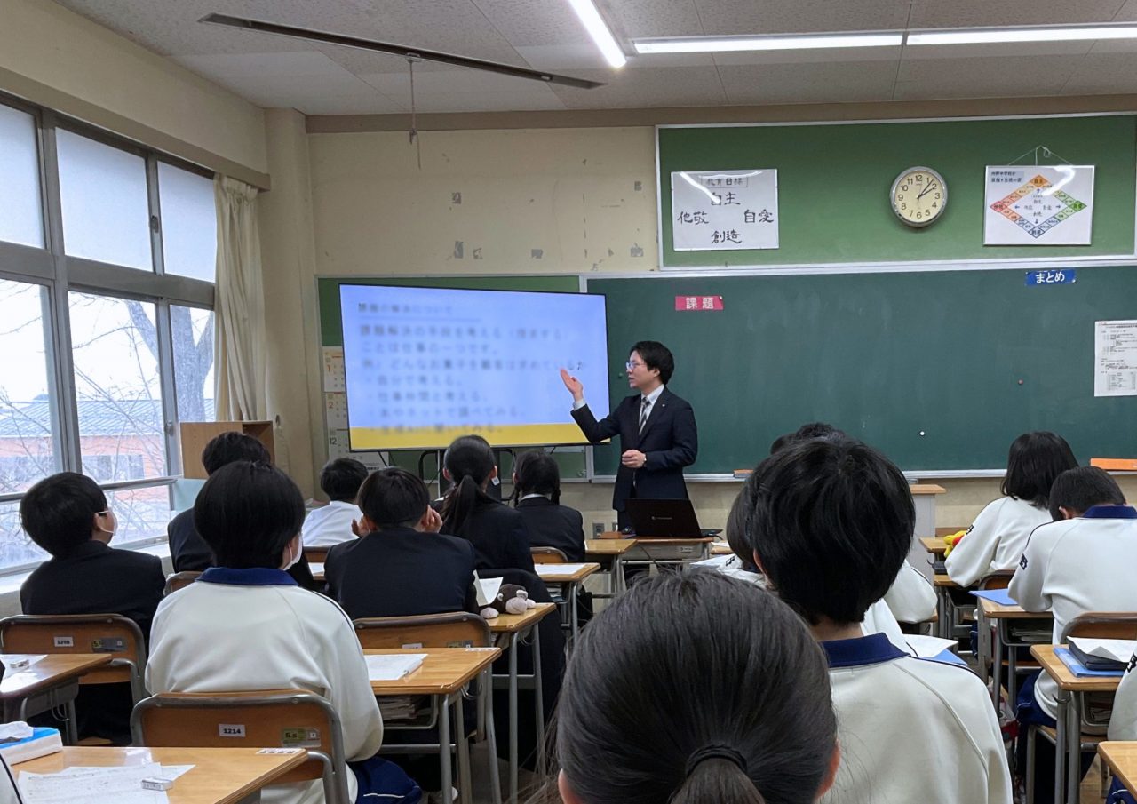 生徒の皆さんがまとめた探究の成果は発表動画として作成され、2026年1月にはその発表動画に対する講評を行うため、再び内野中学校を訪問しました。各グループからは、道路や施設の整備、環境への配慮、地域の活性化につながる提案など多彩なアイデアが発表され、実際の地域調査や情報収集をもとに、よく考え抜かれた内容であることが伝わってきました。