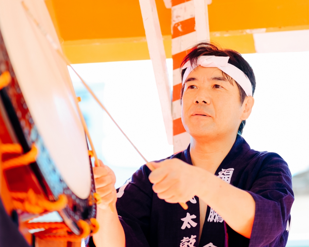 - きっかけは入社2年目の東京勤務時代に、高円寺の阿波踊りを見て、和の音色に感動したことかな。翌年入社3年目に本社勤務になって福鵬会を知り、「自分も和の音色を奏でたい!」と思って参加したけれど、当時、福田組の中では唯一の男性だったんだよ。