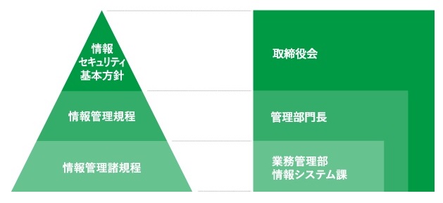 当社は、情報資産を適切に保護・管理するために、「情報管理規定」及びその下位文書を定め、必要な保護と適切な安全対策を講じます。