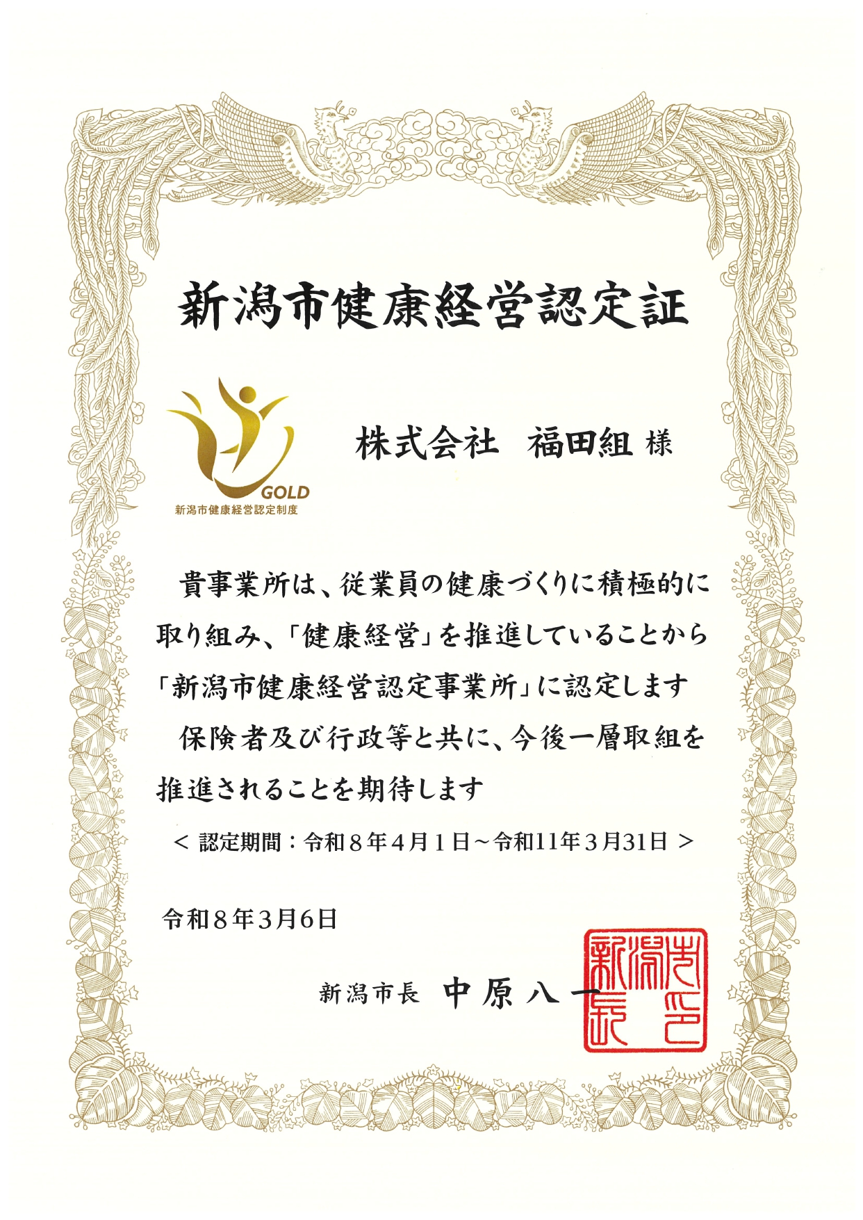 - 2020年より、新潟市の「新潟市健康経営認定事業所」の認定